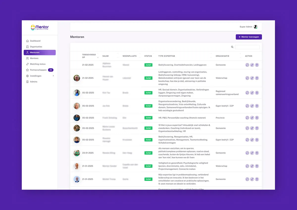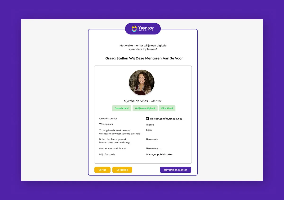 Het ontwikkelen van een mentorplatform voor de overheidssector dat handmatige processen automatiseert, maar toch laagdrempelig en persoonlijk blijft.