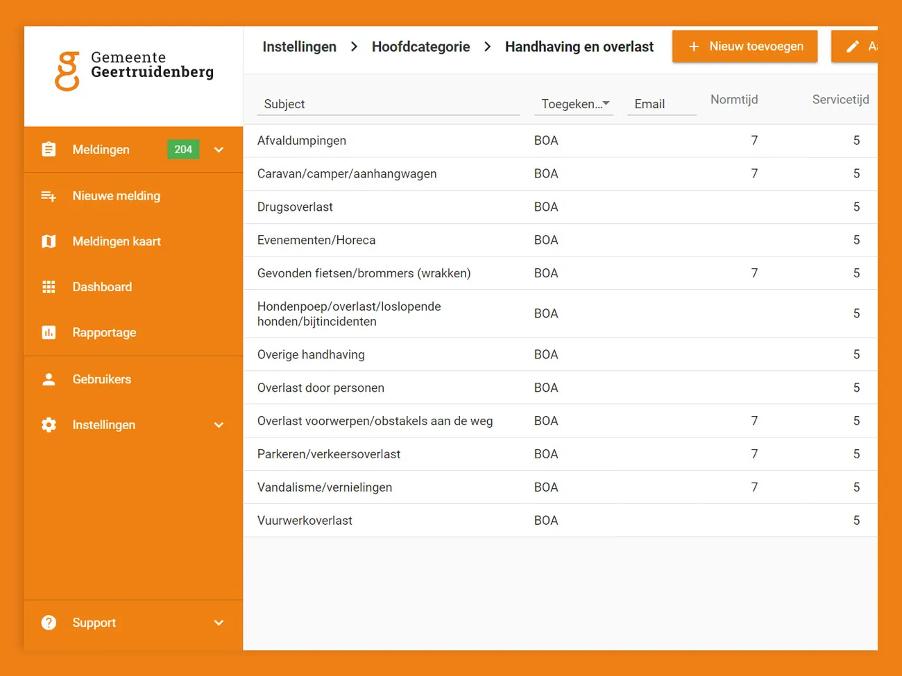 Per categorie van een type melding wordt deze toegekend aan een afdeling of persoon. Hierdoor ontvangt de verantwoordelijk afdeling en/of persoon direct de melding in de werkvoorraad waardoor er geen tijd verloren gaat.