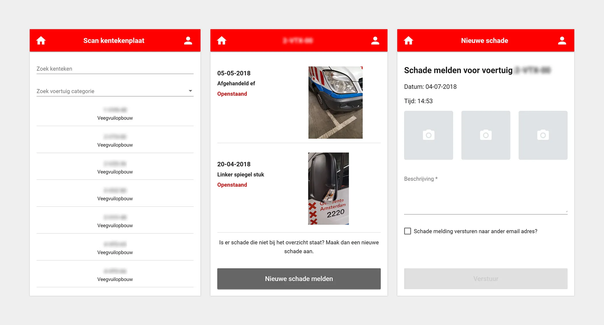 Het systeem maakt het veel eenvoudiger om een voertuig te identificeren. Bestaande schades worden duidelijk weergegeven, zodat er alleen nieuwe schades worden gemeld. Het registreren van een nieuwe schade is mogelijk voor iedere gebruiker van het wagenpark, zonder dat zij toegang hebben tot het administratieve gedeelte. Schades worden in drie éénvoudige stappen gemeld;
